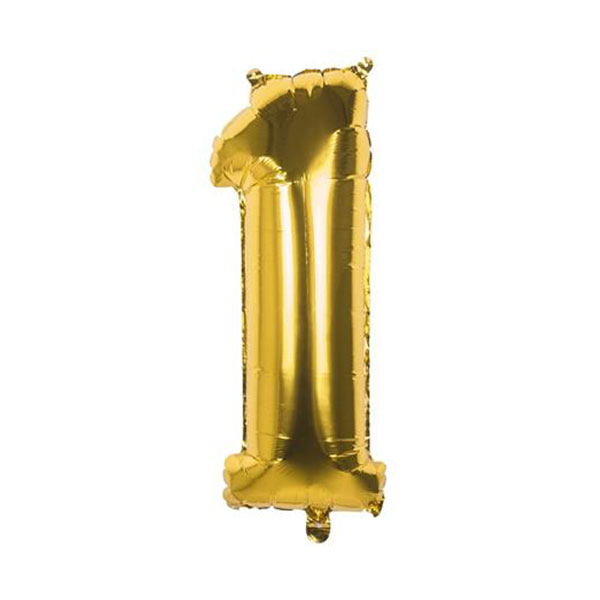 Doskonały duży złoty balon na 1 urodziny, 1 rocznicę itp. Większe liczby lub wyrazy można tworzyć w oparciu o inne balony z kolekcji.