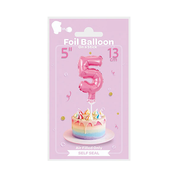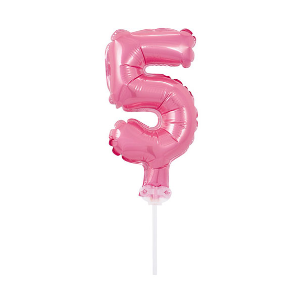 Balon Foliowy Cyfra 5 na patyku – Różowy – 13 cm