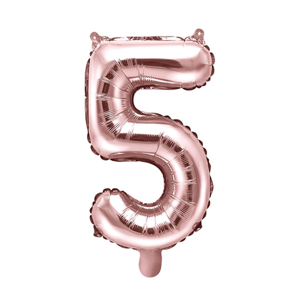 Balon Foliowy Cyfra 5 – różowe-złoto – 35cm