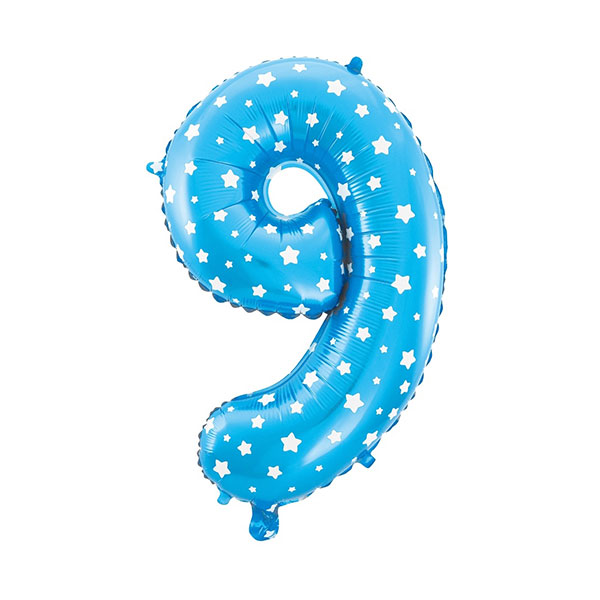 Balon Foliowy Cyfra 9 – niebieski w gwiazdy – 45cm