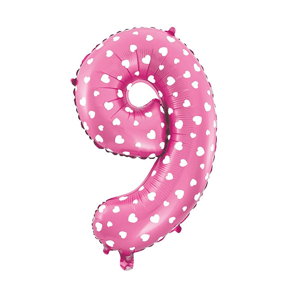 Balon Foliowy Cyfra 9 – różowy w serca – 45cm