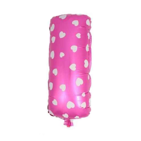 Balon Foliowy Litera “I”, w kolorze różowym, z białymi sercami.
