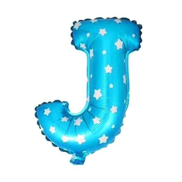 Balon Foliowy Litera “J”, w kolorze niebieskim, z białymi gwiazdkami.