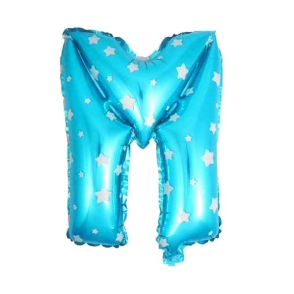 Balon Foliowy Litera M – niebieski w gwiazdki – 45 cm