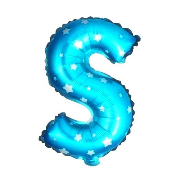 Balon Foliowy Litera “S”, w kolorze niebieskim, z białymi gwiazdkami.