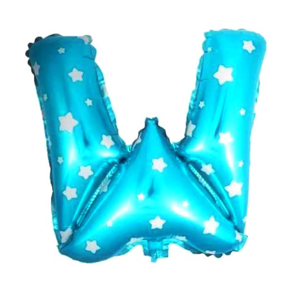 Balon Foliowy Litera W – niebieski w gwiazdki – 45 cm