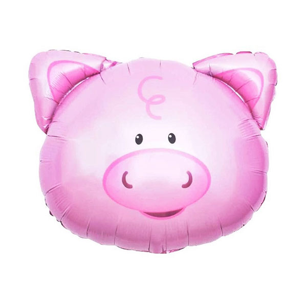 Balon foliowy w kształcie głowy świnki jest doskonały na dziecięce urodzinki.