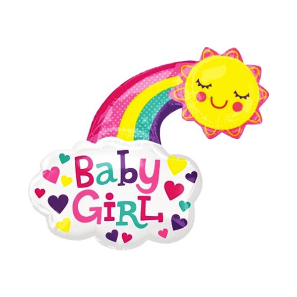 Balon Foliowy w kształcie Tęczy z Chmurką – z napisem Baby Girl – 76 x 66 cm