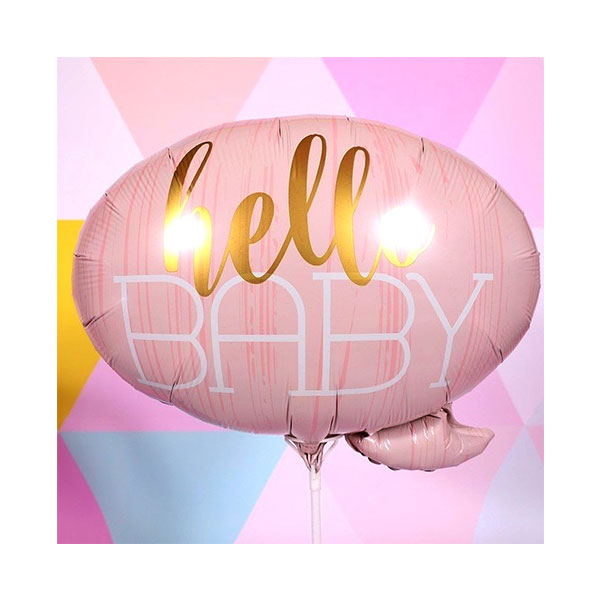Piękny balon foliowy Różowo – Złoty z napisem – Hello Baby doskonale sprawdzi się na baby shower oraz na powitanie nowego członka rodziny.