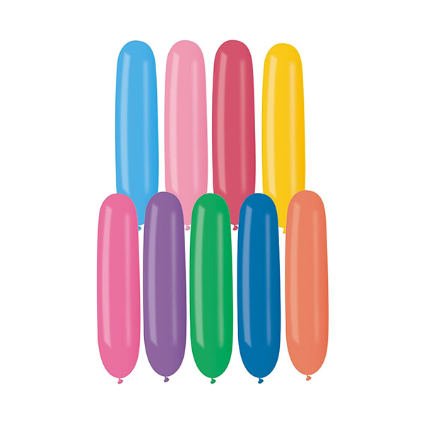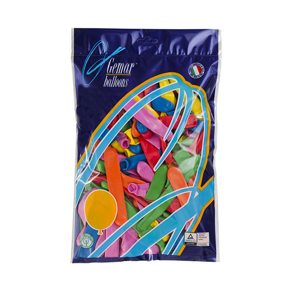 Balony AD1 – Rurka Mniejsza to mix kolorystyczny 100 balonów włoskiego producenta – firmy Gemar – o podłużnym kształcie – idealne zarówno do dekoracji przyjęcia urodzinowego, zabawy – jak i do tworzenia balonowych konstrukcji, wymagających oryginalnych balonowych kształtów.