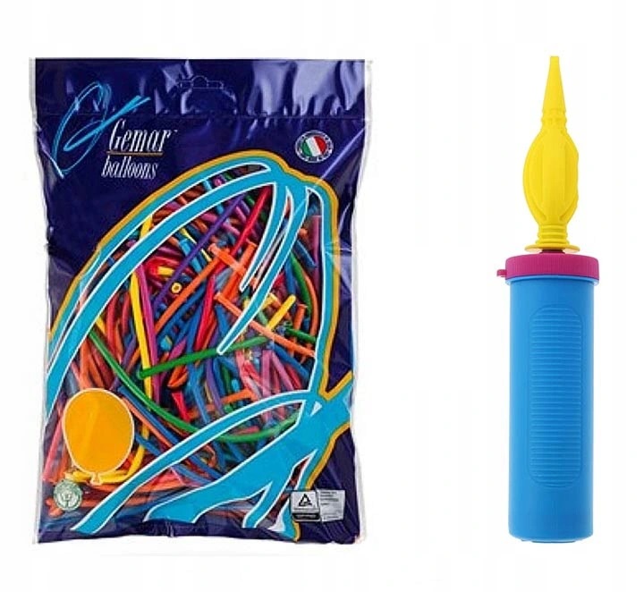 Balony do modelowania – Gemar – Mix Pastel 260 (100szt.) + Pompka do Balonów do Modelowania – Profesjonalna – Szybka