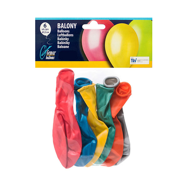 Opakowanie zawiera 6 balonów metalicznych różnokolorowych 10″