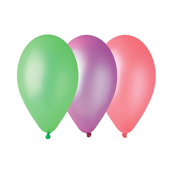 – 5 balonów różnokolorowych ok. 25 cm.Opakowanie: 25 sztuk