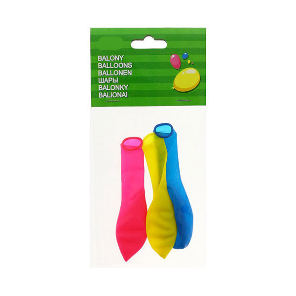 Zestaw trzech kolorowych balonów bez nadruku. Balony Fluorkowe, w neonowych kolorach!