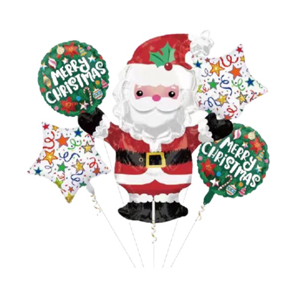 Balony Świąteczne – Zestaw Balonów Mikołaj – 5 sztuk