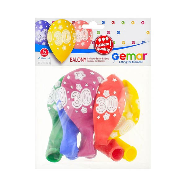 Balony Urodzinowe z nadrukiem 30 – 13 cali – 5 sztuk