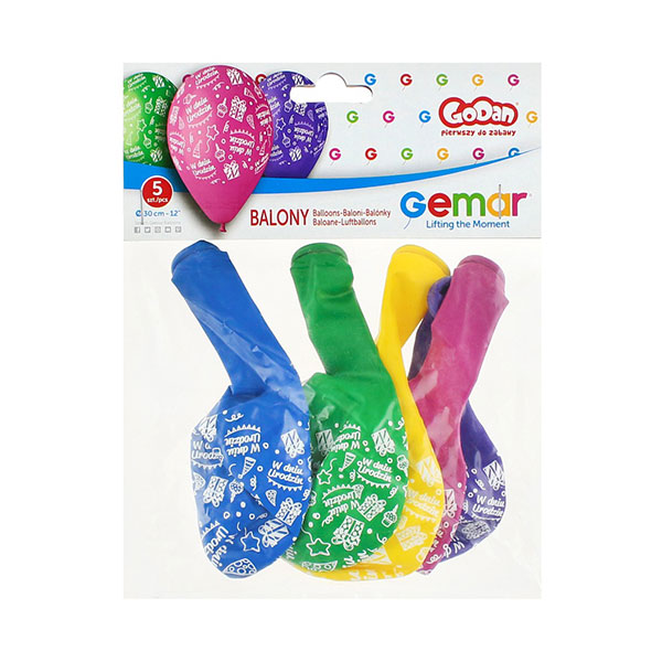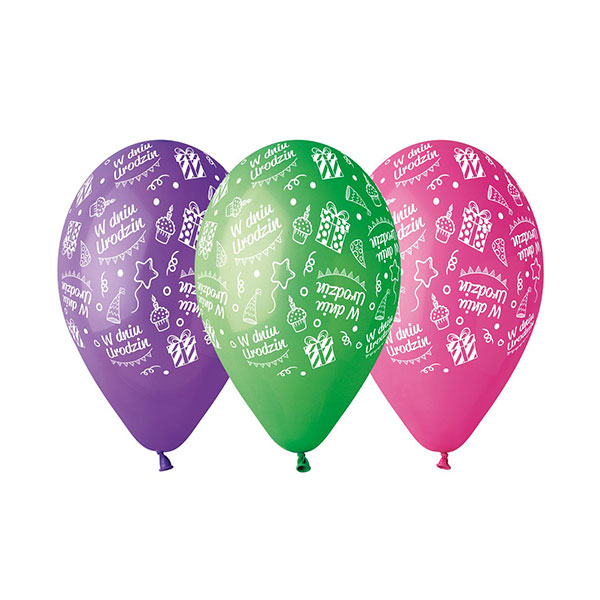 Balony z nadrukiem W dniu urodzin – 5 sztuk