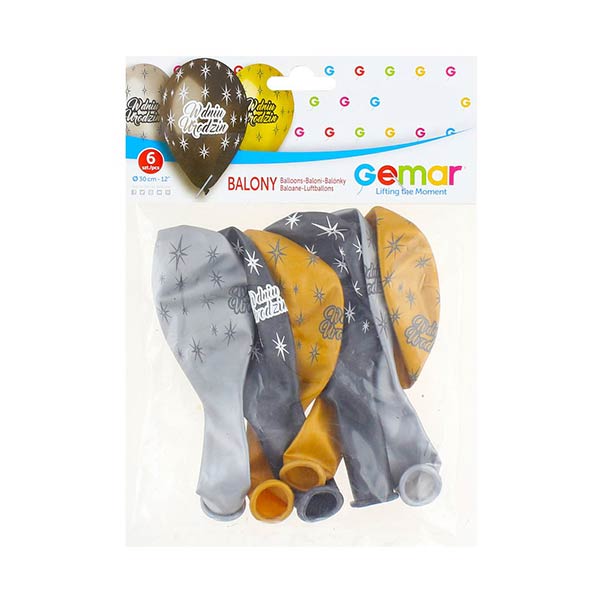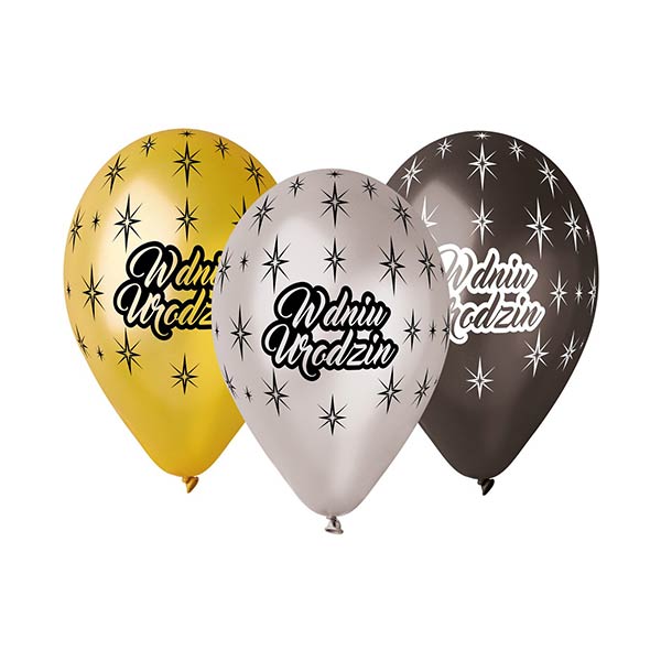 W opakowaniu znajdują się 2 balony złote, 2 balony srebrne oraz 2 balony czarne – Balony z miłym, urodzinowym nadrukiem W Dniu Urodzin.