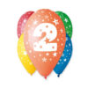 W opakowaniu znajduje się 5 pastelowych różnokolorowych balonów z cyfrą “2”