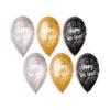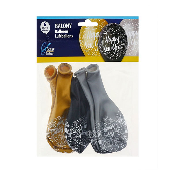 Balony z nadrukiem – Happy New Year – złote, srebrne, czarne – 12″ – 6 sztuk