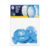 W opakowaniu znajduje się 5 błękitnych balonów z napisem: