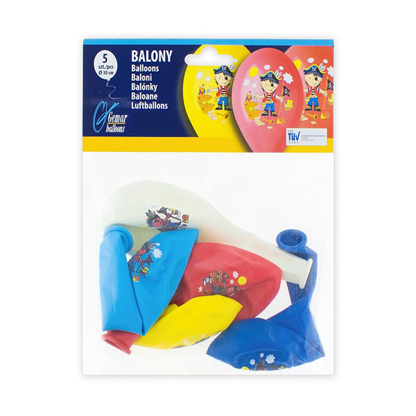 Balony z nadrukiem – PIRAT – kolorowe – 12″ – 5 sztuk