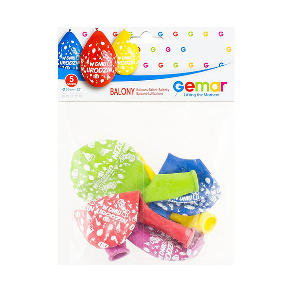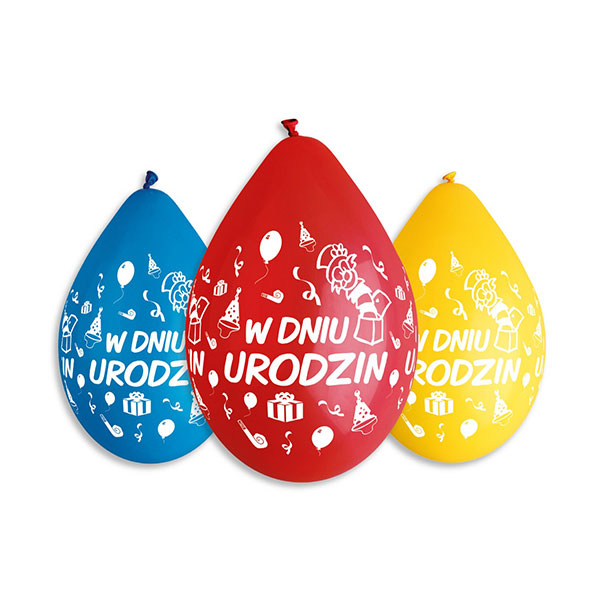 Balony z nadrukiem – W Dniu Urodzin – 5 sztuk – 12″ – wiszące