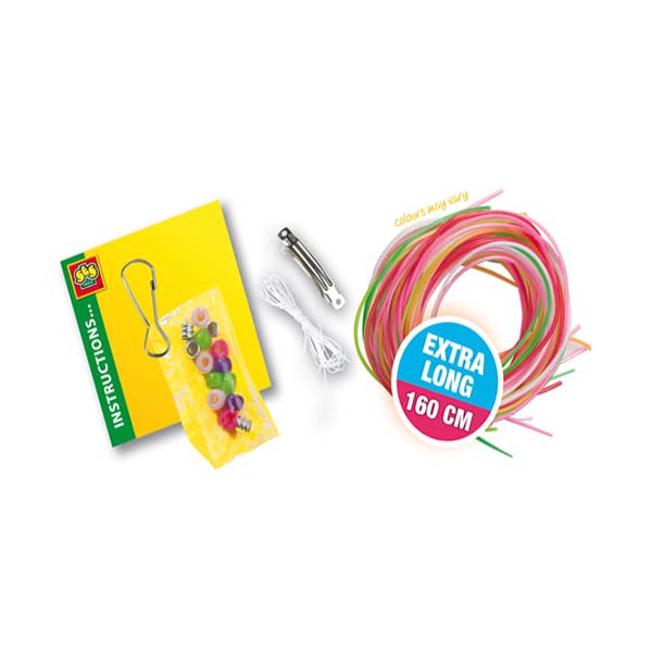 Zestaw jest bardzo rozbudowany – zawiera mnóstwo ozdób, koralików, brokatów, naklejek, zawieszek, gumeczek, ponadto jest kompletny – czyli zawiera wszystko, co do ich wykonania jest potrzebne, nic już nie musisz przygotowywać.