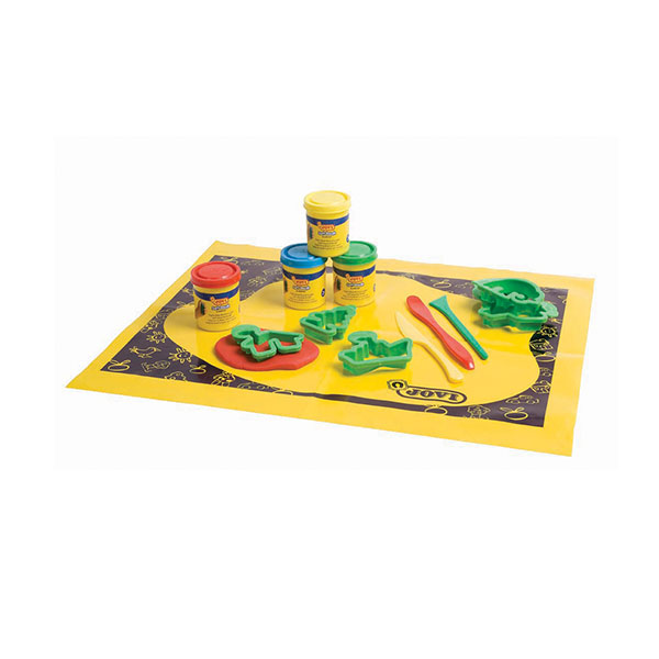 Ciastoplastolina firmy JOVI to naturalny i całkowicie bezpieczny produkt. Masa jest bardzo plastyczna i nie klei się do rąk. Przeznaczona dla dzieci po drugim roku życia. Zestaw zawiera: 4 kolory ciastoliny po 50g, foliową matę ochronną, 3 szpatułki, 6 foremek i wiaderko. Doskonała do codziennych zabaw!