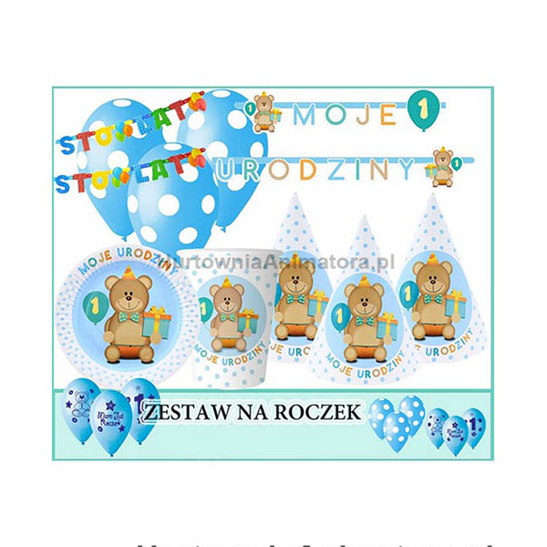 ZESTAW NA ROCZEK “PIERWSZE URODZINY” NIEBIESKI