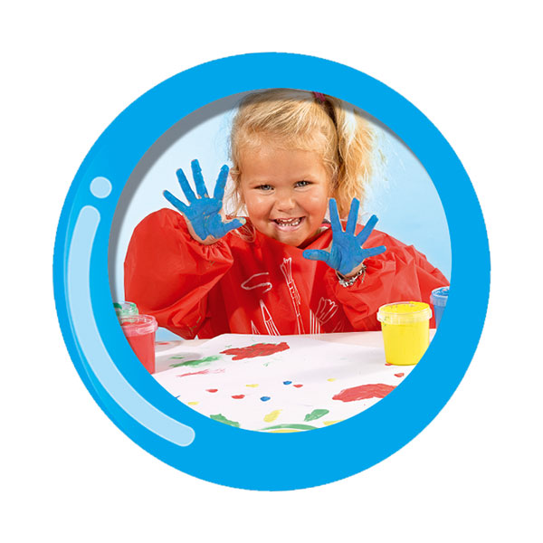 Farby do malowania palcami firmy JOVI to produkt nietoksyczny, całkowicie bezpieczny, przeznaczony dla dzieci od trzeciego roku życia. Farbki są dostępne w sześciu pięknych, żywych kolorach. Łatwo się zmywają i wolną schną. Malowanie palcami rozwija zmysł dotyku i pozwala wyćwiczyć sprawność dziecięcych rączek. Zestaw zawiera: 6 dużych pojemników 125ml z farbami (biała, żółta, czerwona, zielona, brązowa i niebieska), 4 stemple pieczątki, 4 szablony do malowania (z tworzywa sztucznego), foliową matę (zabezpieczającą stół przed pobrudzeniem), szeroki wałek oraz plastikowy, zamykany kuferek.