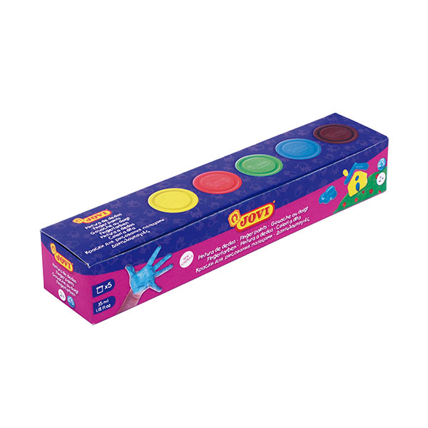 Farby do malowania palcami firmy JOVI to produkt nietoksyczny, całkowicie bezpieczny, przeznaczony dla dzieci od trzeciego roku życia. Farbki są dostępne w pięciu pięknych, żywych kolorach (5 x 35 ml). Łatwo się zmywają i wolną schną. Malowanie palcami rozwija zmysł dotyku i pozwala wyćwiczyć sprawność dziecięcych rączek.