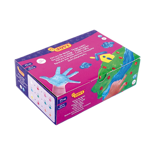Farby do malowania palcami firmy JOVI to produkt nietoksyczny, całkowicie bezpieczny, przeznaczony dla dzieci od trzeciego roku życia. Farbki są dostępne w sześciu pięknych, żywych kolorach (6 x 125 ml). Łatwo się zmywają i wolną schną. Malowanie palcami rozwija zmysł dotyku i pozwala wyćwiczyć sprawność dziecięcych rączek.