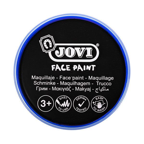 Farba do twarzy JOVI w postaci kremu, na bazie oleju, co w dużej mierze zapobiega jej wysychaniu i sprawia, że jest łatwa w użyciu, i nie wymaga stosowania wody. Dobrze kryje i jednocześnie jest łatwa do usunięcia, wystarczy wilgotna ściereczka. Farba do twarzy nie zawiera parabenów i jest hipoalergiczna.