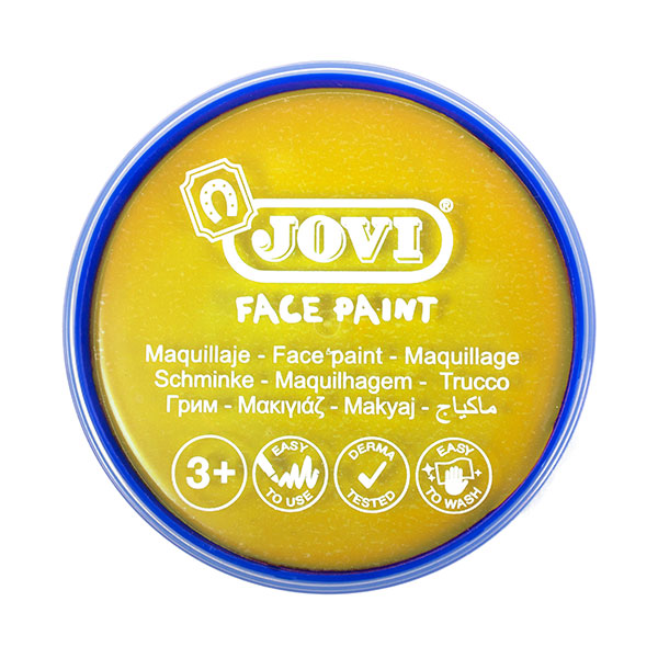 Farba do twarzy JOVI w postaci kremu, na bazie oleju, co w dużej mierze zapobiega jej wysychaniu i sprawia, że jest łatwa w użyciu, i nie wymaga stosowania wody. Dobrze kryje i jednocześnie jest łatwa do usunięcia, wystarczy wilgotna ściereczka lub woda z mydłem. Farba do twarzy nie zawiera parabenów i jest hipoalergiczna.
