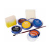 Opakowanie zawiera 6 poj. po 8ml, 2 gąbki, pędzelek i instrukcja malowania.