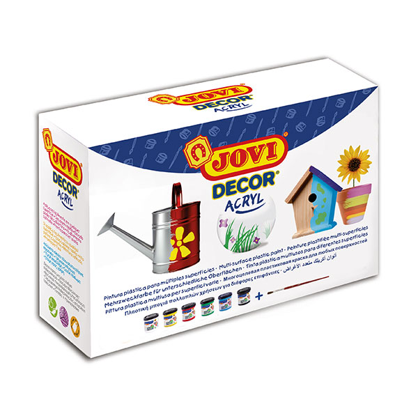 Zielona jasna farba dekoracyjna firmy JOVI jest przeznaczona do malowania na wszystkich rodzajach powierzchni – tkaninach, ubraniach, drewnie, metalu. Farba po wyschnięciu jest odporna na wodę. Dobrze i jednolicie kryje, doskonale nadaje się do malowania przedmiotów wykonanych z mas plastycznych JOVI. Farba dostępna jest w butelce o pojemności 250 ml.