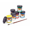 Zestaw zawiera sześć farbek w opakowaniach o pojemności 55 ml.
