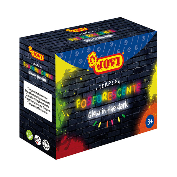 Farby plakatowe firmy Jovi (4 x 55 ml) – dostępne w czterech energetycznych kolorach, które świecą w ciemności! Farby szybko schną i nie osiadają na dnie pojemnika. Mają konsystencję, która nie wymaga rozcieńczania, jest gotowa do użycia zaraz po otwarciu, a ponadto pozwala na łatwe łączenie kolorów.