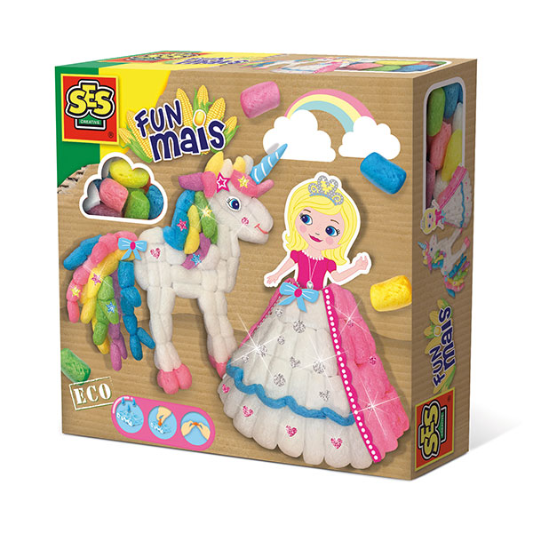 Funmais jest zrobiona z prawdziwej kukurydzy. Sklej kawałki razem za pomocą wody. Zawiera błyszczącą folię samoprzylepną, bez kleju.