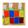 Proponowana MATA SENSORYCZNA, to układ ośmiu kolorowych kieszeni o wymiarach 30 x 40 cm z zamknięciem na mocny rzep. W pojemnych kieszeniach wyścielanych miękką pianką można umieścić dowolne przedmioty o różnych fakturach i kształtach np. szyszki, groch, patyczki, piłeczki itp.