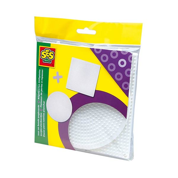 W zestawie – 2 przezroczyste szablony w kształcie koła i kwadratu do układania koralików.