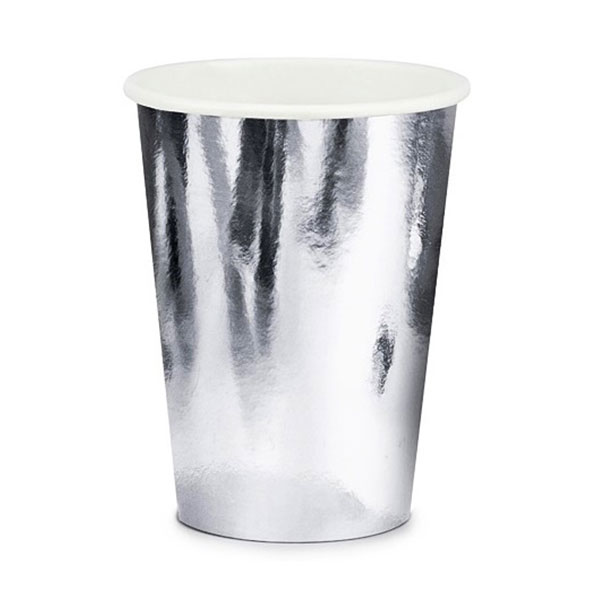 Kubki Jednorazowe – srebrne – Papierowe – 6 sztuk