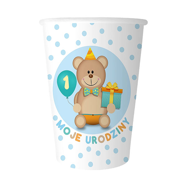 Kubki Papierowe – Moje 1 Urodziny – niebieskie – 6 sztuk