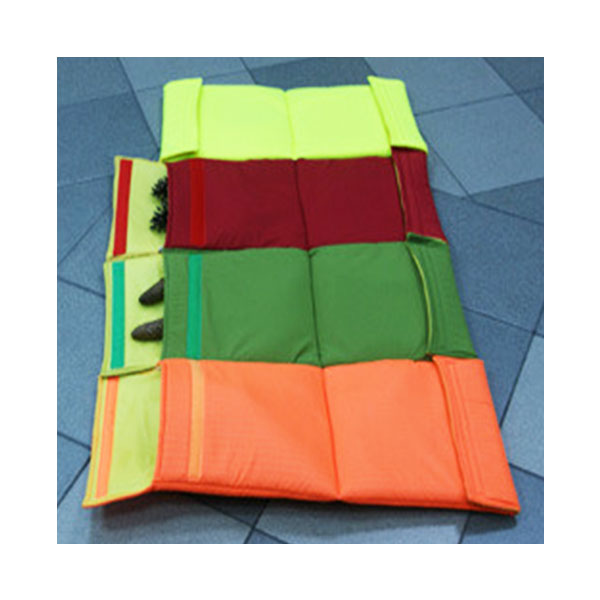 Proponowana MATA SENSORYCZNA, to układ ośmiu kolorowych kieszeni o wymiarach 30 x 40 cm z zamknięciem na mocny rzep. W pojemnych kieszeniach wyścielanych miękką pianką można umieścić dowolne przedmioty o różnych fakturach i kształtach np. szyszki, groch, patyczki, piłeczki itp.