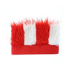 Czerwona, materiałowa opaska z biało – czerwonym futerkiem