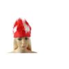 Obwód: ok. 60cmBiało-czerwona czapka uszyta z miękkiego, przyjemnego w dotyku welurowego materiału.