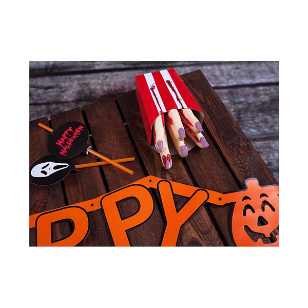 Zakrwawione palce w pudełku po frytkach dają nieskończenie wiele możliwości stworzenia Halloweenowych dekoracji.