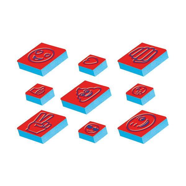 Stempelki w kształcie Emotikonek pozwolą dziecku uatrakcyjnić swoje prace plastyczne, a także uczą przeniesienia Internetu do prawdziwego świata.
