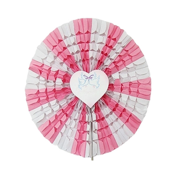 Rozeta biało-różowa z sercem jest delikatna i urocza. Możesz nią udekorować każdą ścianę, okno oraz ściankę za Parą Młodą.